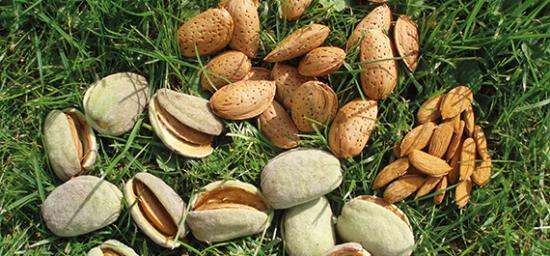 Milky ripe green fruit with salt, fresh consumption of almonds in September, resin for chewing.